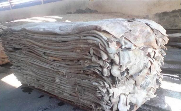 (蓝湿牛皮是牛皮加工半成品,属于熟牛皮,一般是由生牛皮经过去脂、去油、脱毛制成,但未经晾干等进一步处理)
