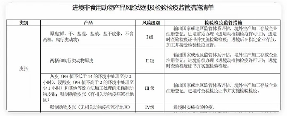 一、海关总署对进境非食用动物产品实施检疫准入制度,根据风险级别,分为I级、II级、III级、IV级(见图)
